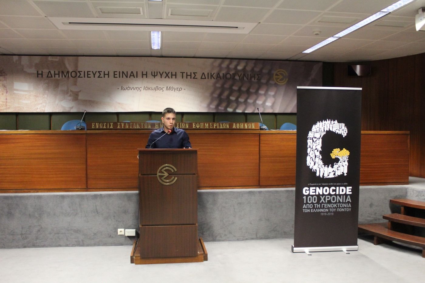 Την Κυριακή 10 Μαρτίου 2019, στην αίθουσα «Γεώργιος Καράντζας» της Ένωσης Συντακτών Ημερήσιων Εφημερίδων Αττικής (Ε.Σ.Η.Ε.Α.), η Ένωση Ποντιακής Νεολαίας Αττικής, σε συνεργασία με την Παμποντιακή Ομοσπονδία Ελλάδος, πραγματοποίησαν εκδήλωση αναφορικά με το Ολοκαύτωμα, στην οποία προβλήθηκε το ντοκιμαντέρ «Φιλιά εις τα παιδιά».